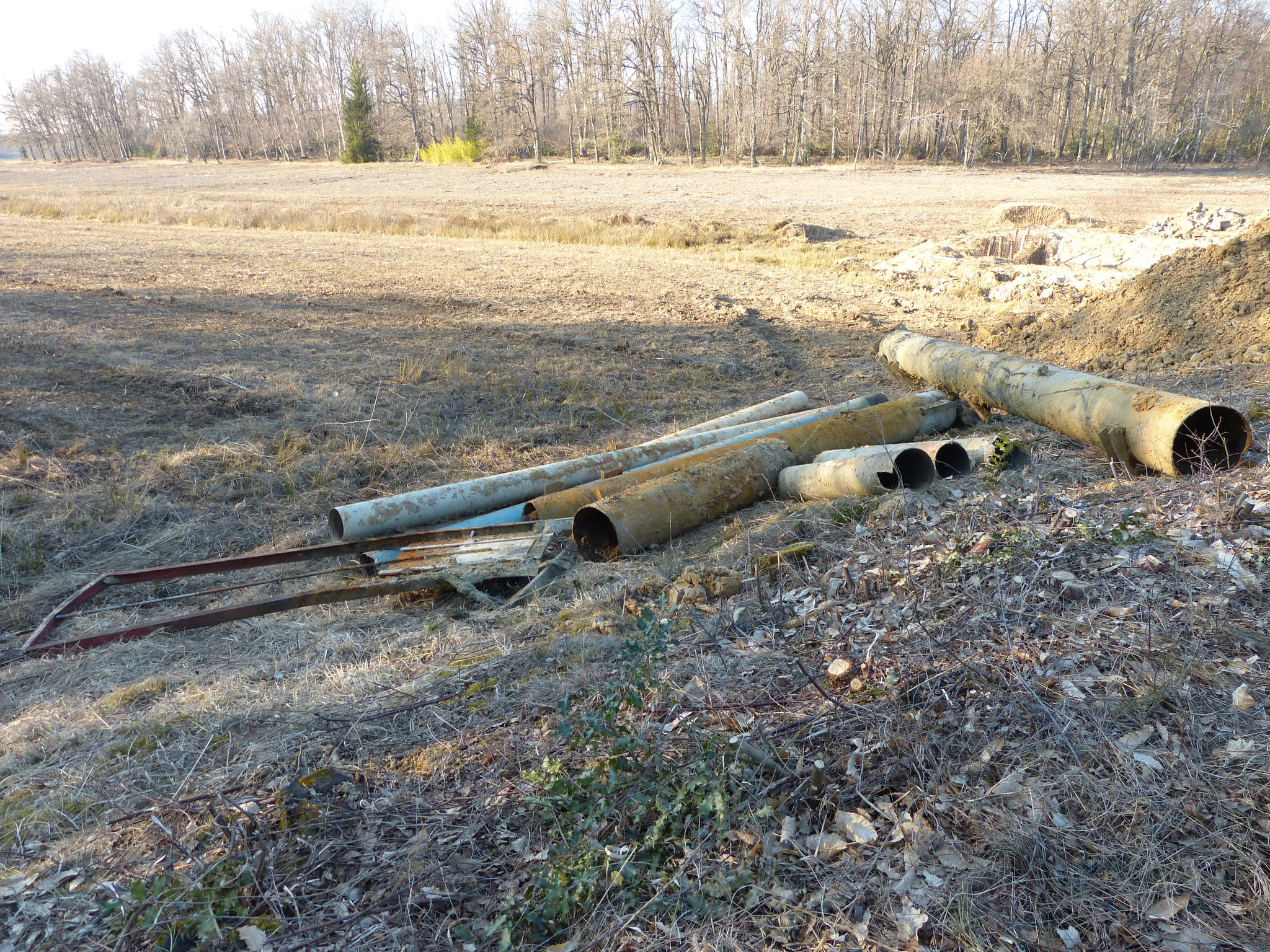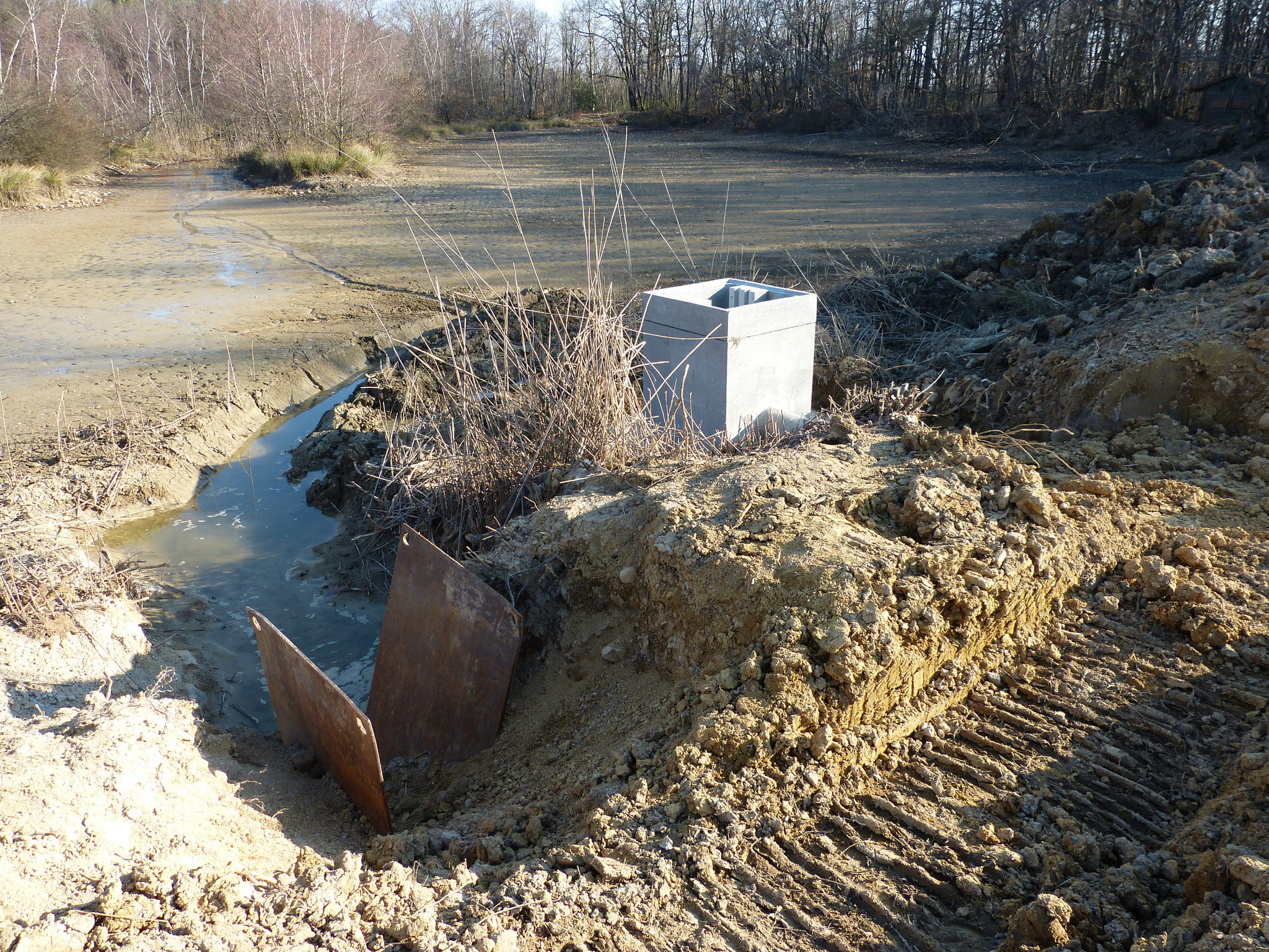 Petite visite au chantier du Grand Albert ce dimanche 6 mars : côté Haut Albert, le nouvel ouvrage de vidange est en cours de pose, tandis que les vieux tuyaux rouillés disent adieu au